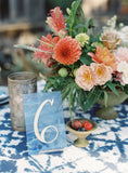 Each of these table numbers is made of real stained glass in a variety of colors that coordinate with your wedding's mood.